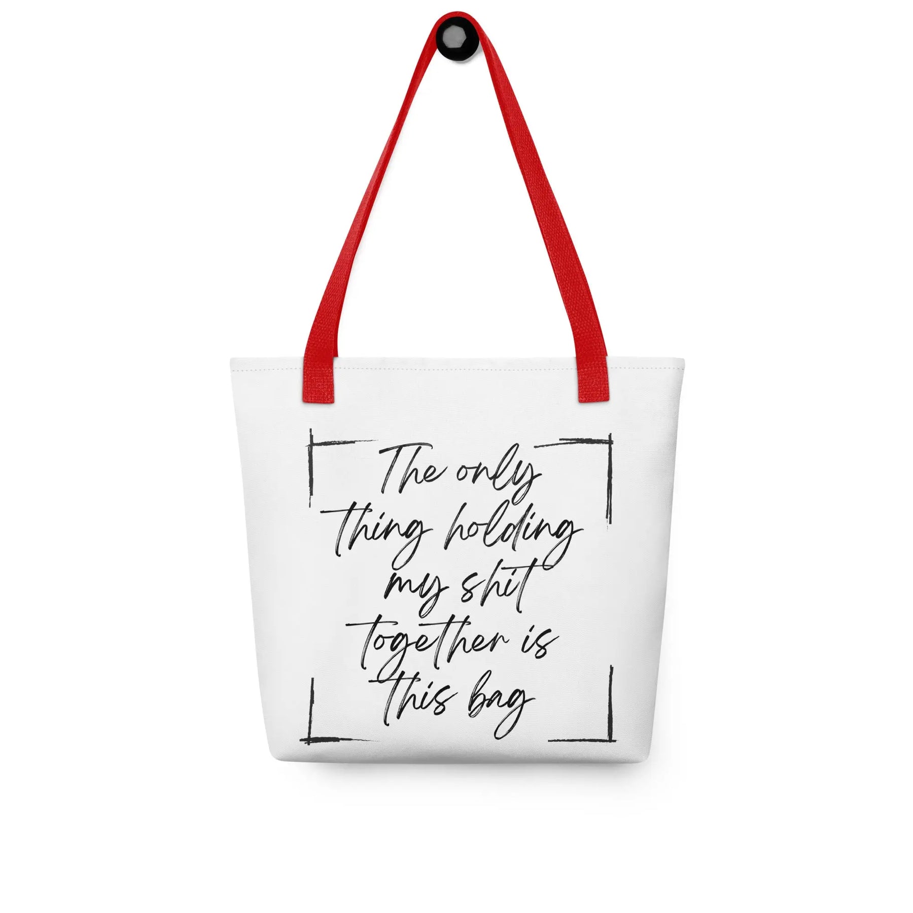 Carry comfort and style with the ‘The only thing holding’ Tote Bag from Secret Design, LLC. Durable, spacious, and designed to brighten your day with a calming touch.
