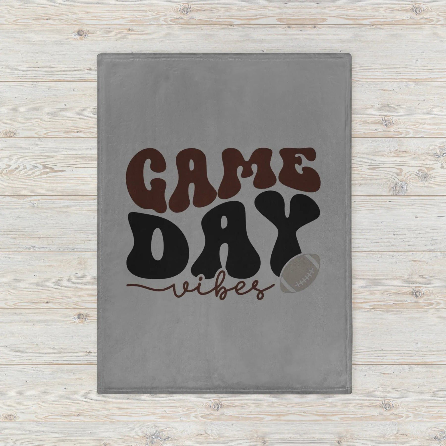 The Game Day Vibes throw blanket features a soft silk-touch polyester fabric, perfect for cozy games.
