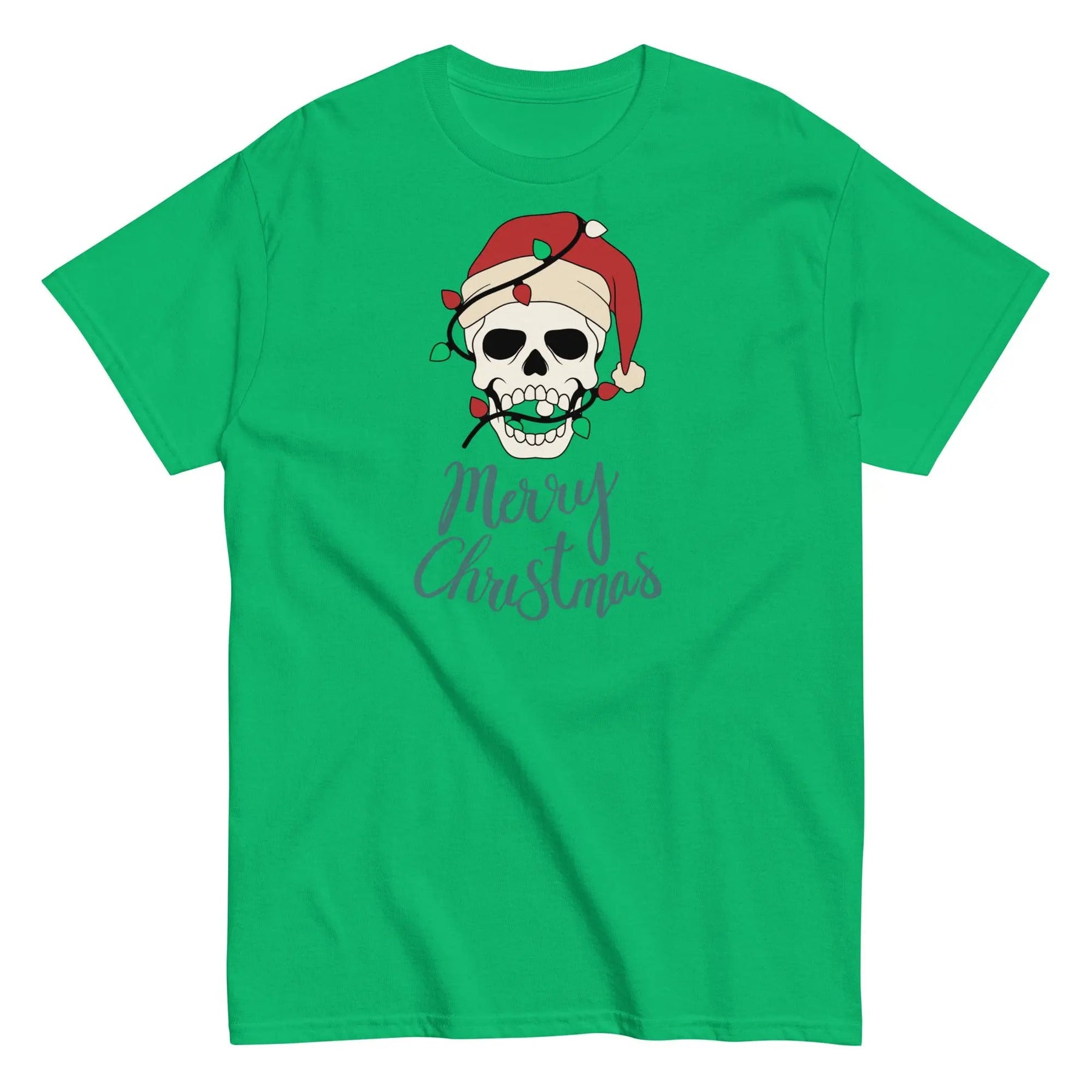 Merry Christmas — Festive Skull T-Shirt with Santa Hat and Lights