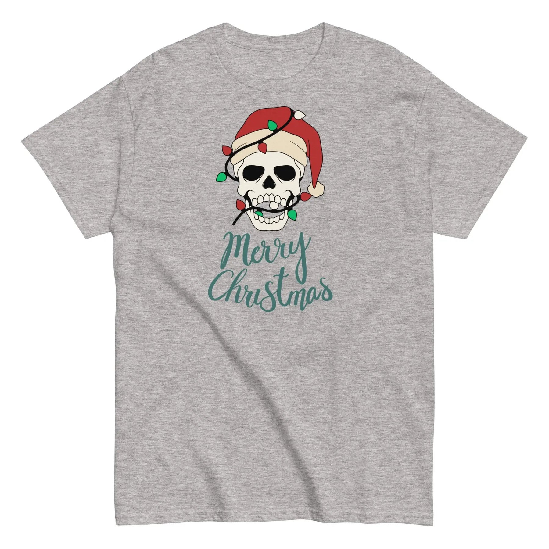 Add a bold twist to your holiday wardrobe with this edgy “Merry Christmas” t-shirt featuring a skull wearing a Santa hat and wrapped in glowing Christmas lights. Perfect for those who love gothic style with a festive flair, this shirt combines holiday spirit and rock ‘n’ roll attitude. Soft, comfy, and ideal for Christmas parties, concerts, or gifting to someone with unique style.